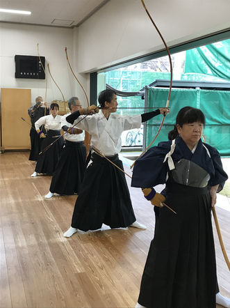 当連盟は毎年5月より初心者弓道教室を開催し、1年間で初段を目標に指導をしております。